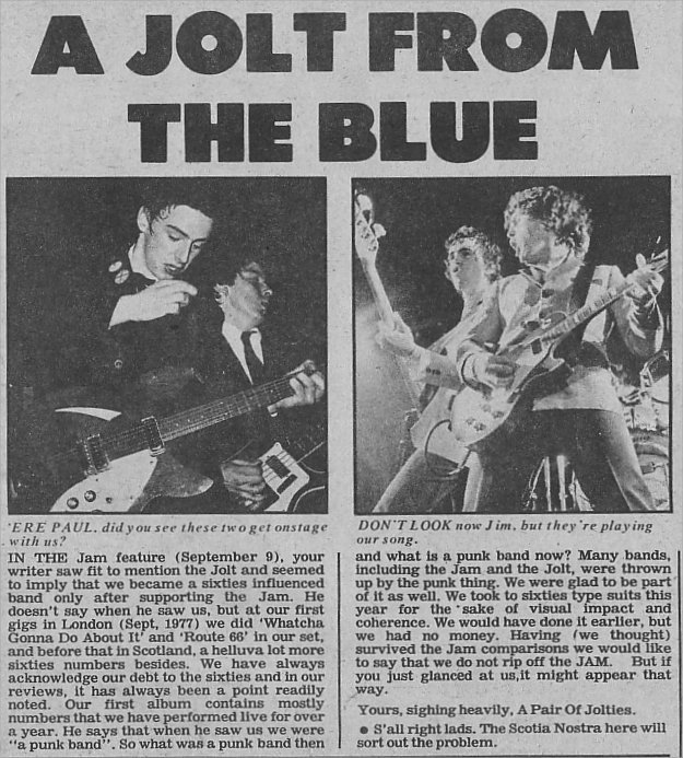 Also mentioned in the Jam article were Scottish band The Jolt who wrote this reply to allay any criticism they were Jam copyists. Read it